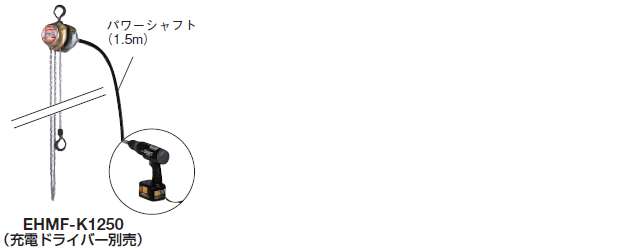 専用パワーシャフト(1.5m)に充電式電動ドライバーをつなぐだけで、遠隔操作による電動の巻き上げ・巻き下げ作業が行えます。